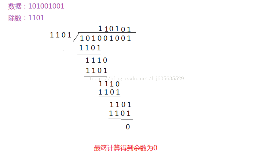 - 余数不为0,这样标识这个帧是有问题的,这样就丢弃这个帧。